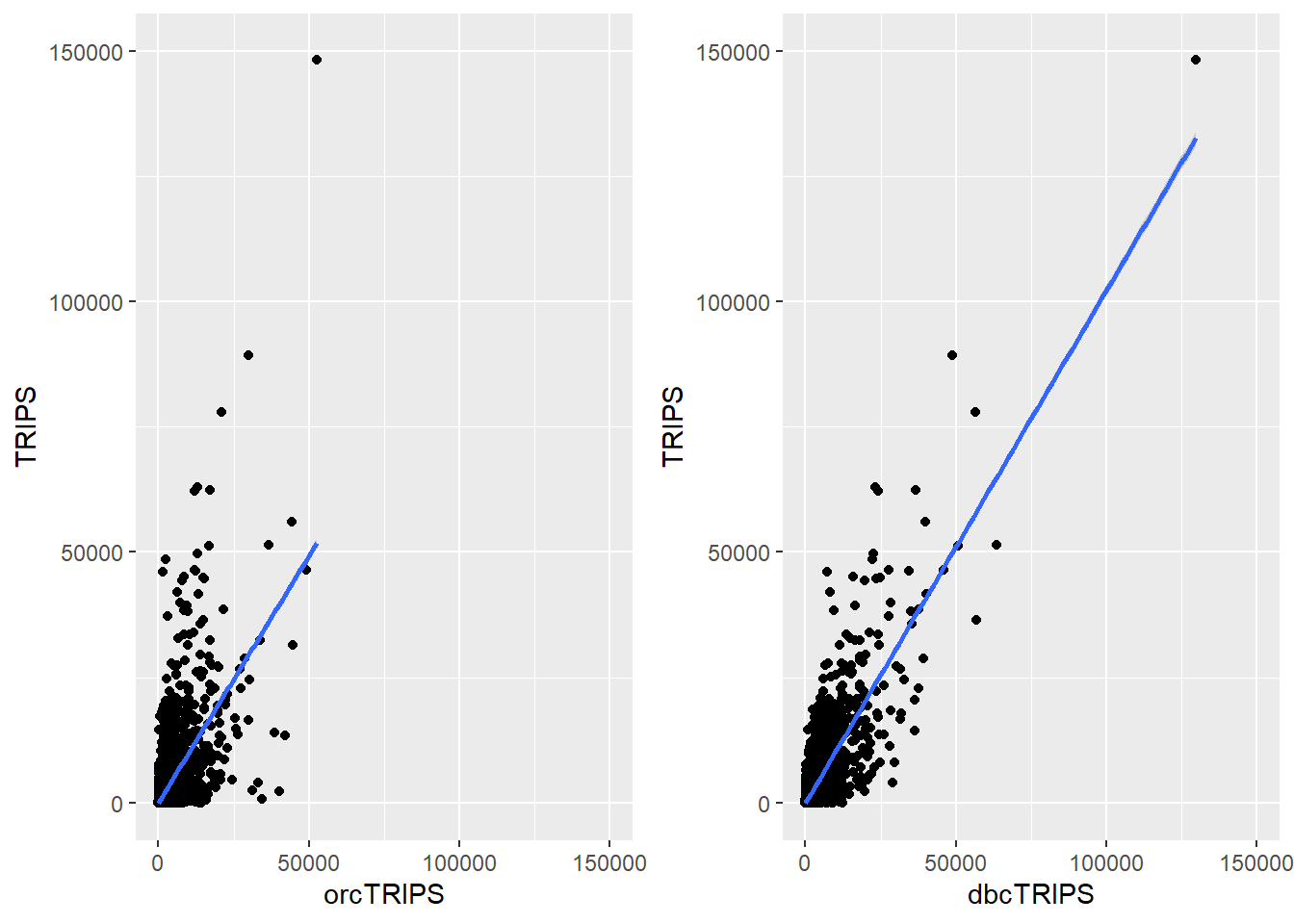 rename(dbcTRIPS = "dbcSIM_Poisson.fitted.values")orc_p <- ggplot(data = inter_zonal_flow,